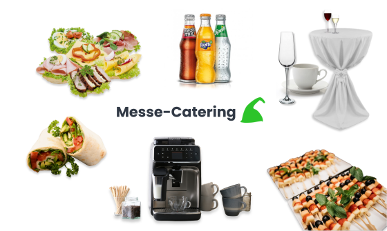 Messeübersicht unser Sortiment Neben üblichen Catering Produkten wie z.B. Brötchenplatten, Wraps, Bagels und Getränken, können wir auch deine individuelle Wünsche wie z.B. Equipment (Kühlschränke, Kaffeeautomaten o.ä.) erfüllen.